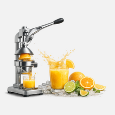 Heavy duty manual citrus press made from reinforced cast iron with food-grade stainless steel parts. The long lever extracts maximum juice from oranges, lemons, limes, grapefruit, and pomegranates with minimal effort. Stable suction base and removable strainer ensure smooth, seed-free juice. Ideal for home or commercial use.